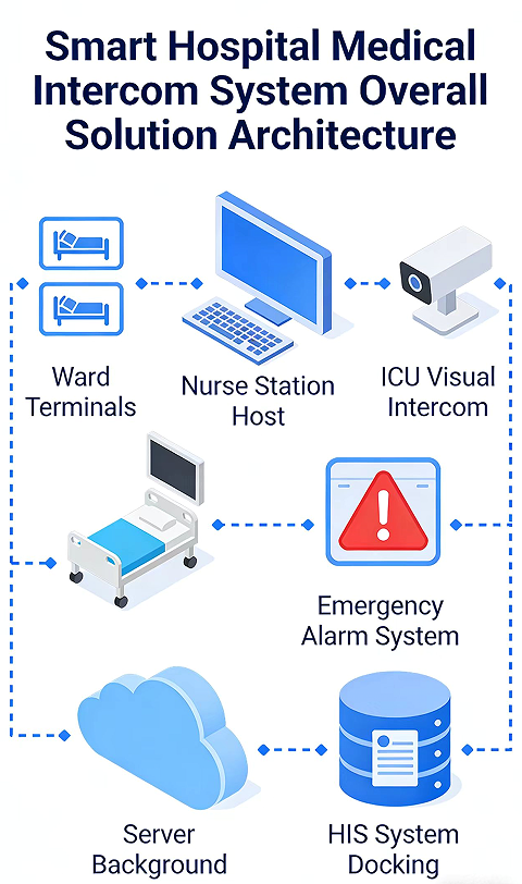 With the comprehensive advancement of smart hospital construction, medical intercom systems have gradually evolved from traditional single call functions into core smart nursing equipment that integrates audio and video communication, intelligent early warning, data linkage, and full-process visualization, becoming an important support for improving efficiency and ensuring safety in modern medical services.